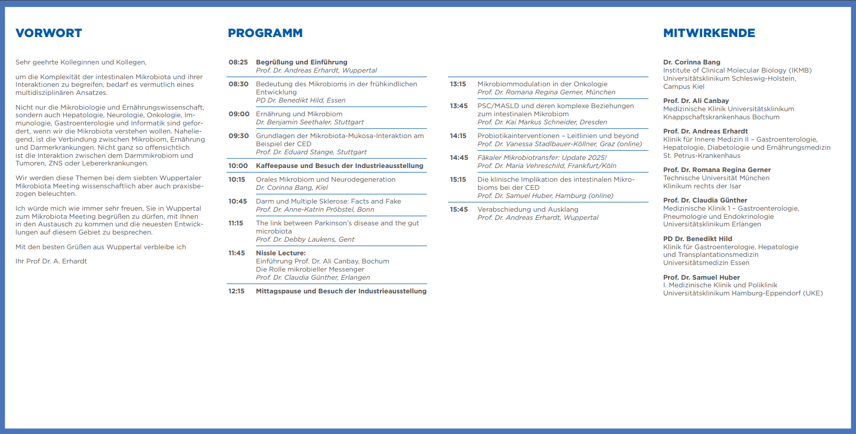 es ist mir eine besondere Freude, Sie am 29 November 2025 zu unserem 7. Microbiota-Meeting in das Hotel Vienna Haus einladen zu dürfen.